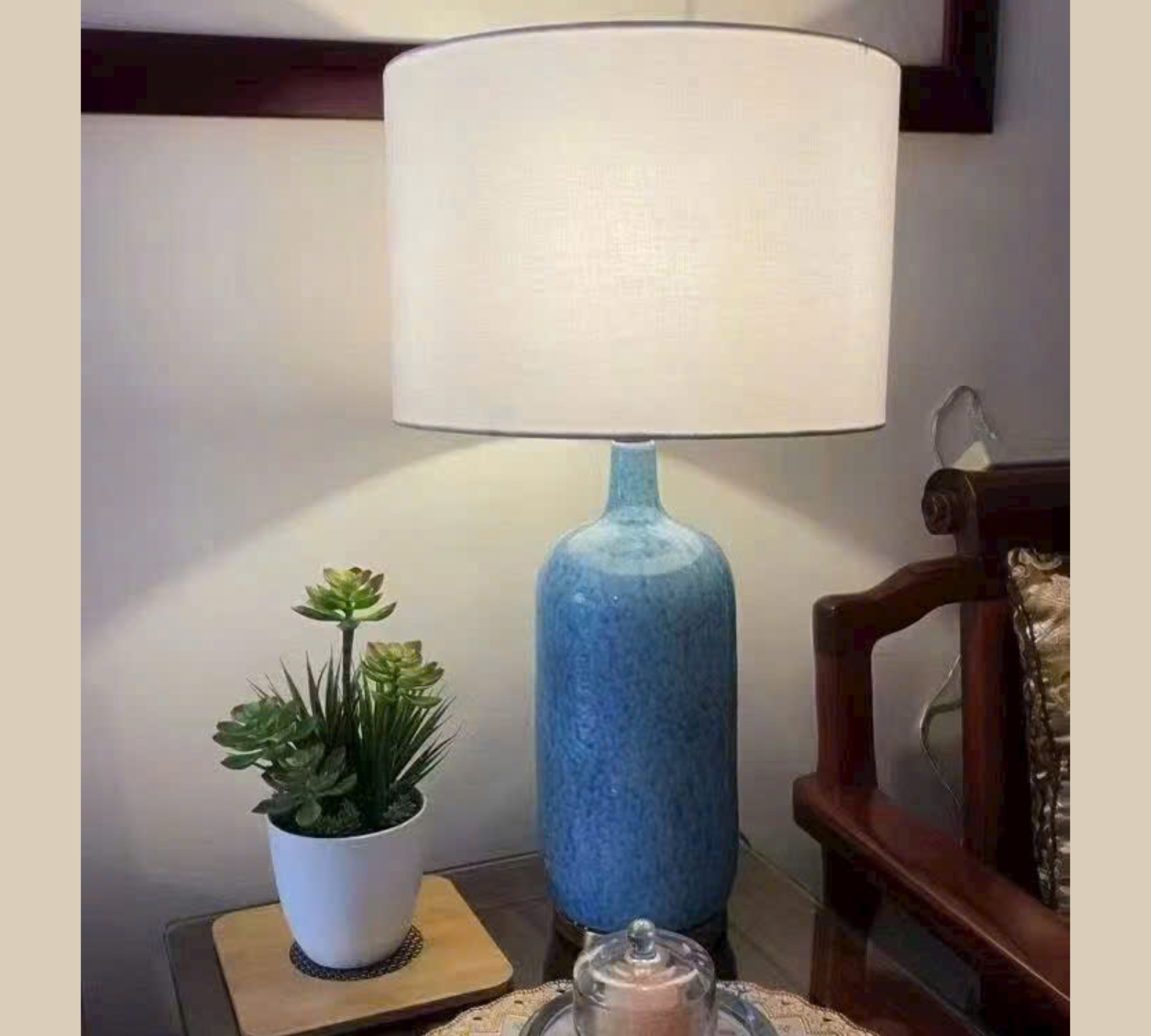 Đèn bàn gốm chao họa tiết DB92