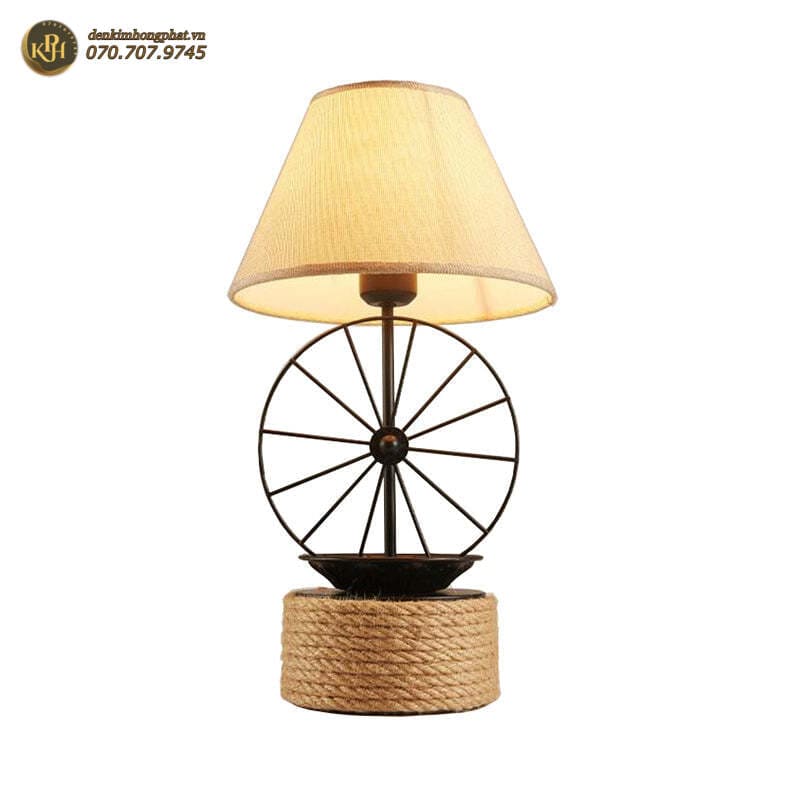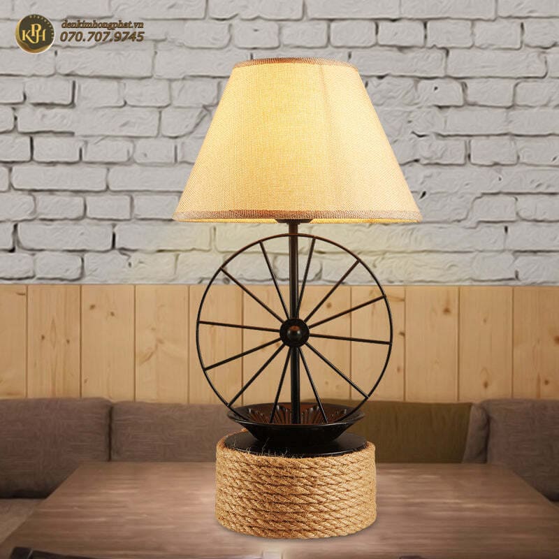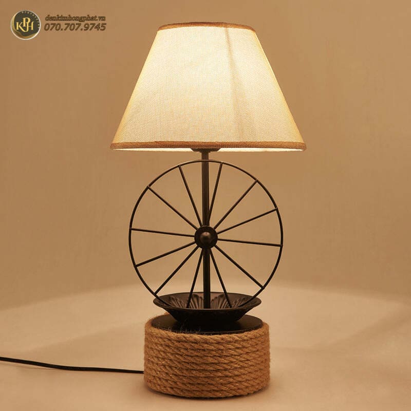 Đèn bàn màu đen kiểu nhà máy có bánh xe trang trí