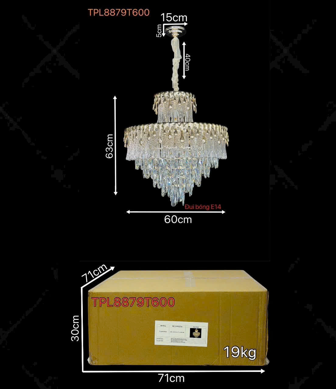 Đèn thả pha lê TPL8879 VT230625