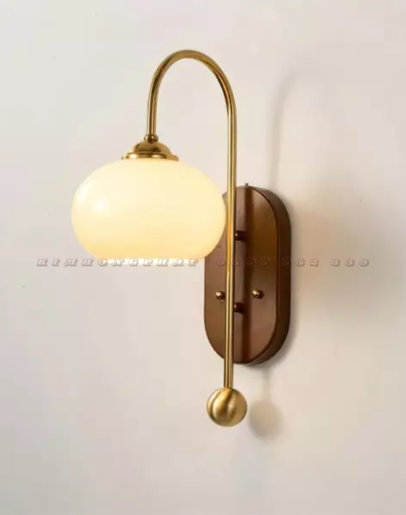 Chất liệu: Hợp kim +gỗ + chao thuỷ tinh màu sữa