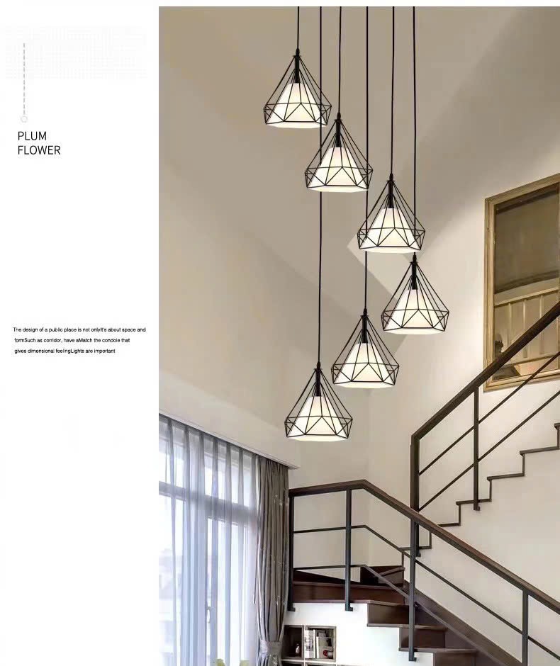 Đèn thả thông tầng kim cương, bộ 6 đèn