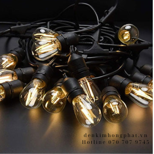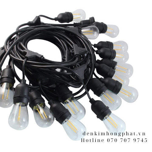 Đèn dây ngoài trời (Loại 1) 10 M 15 đui trang trí quán chưa bóng