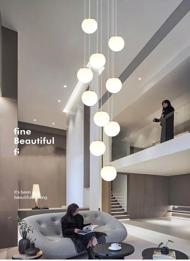 Đèn thả thông tầng, bộ 10 bóng thủy tinh đục